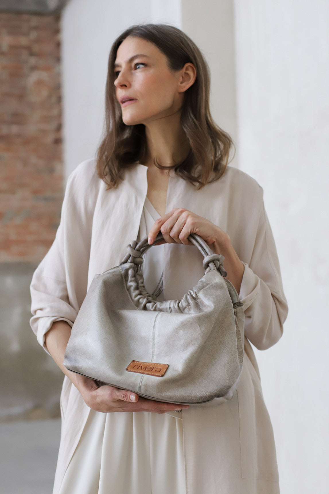 The Alide de Rivera bag stands out for its relaxed yet elegant design. Crafted from leather, it combines texture and flexibility to offer comfort and style in a single piece. Its gathered closure and knotted handles lend it a handcrafted feel, while its medium size makes it the perfect everyday companion. An accessory that perfectly balances sophistication and naturalness.