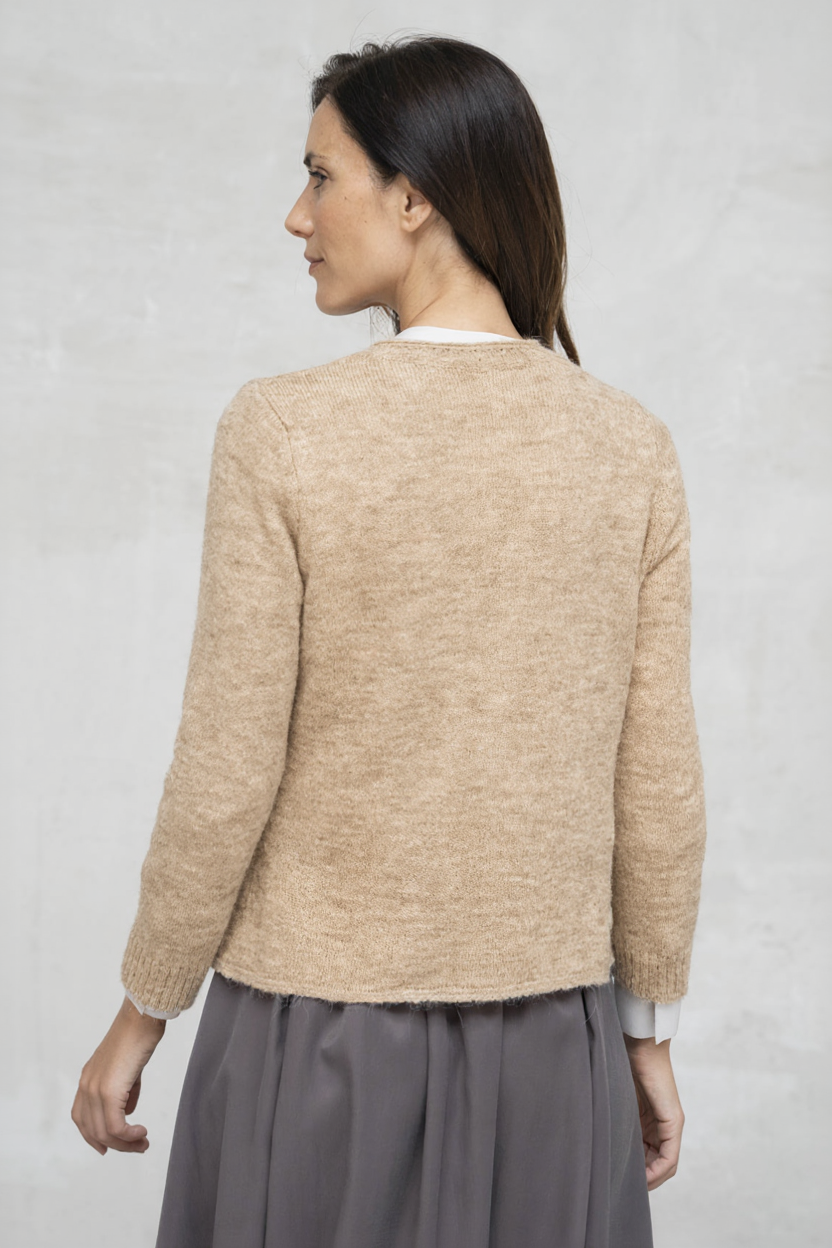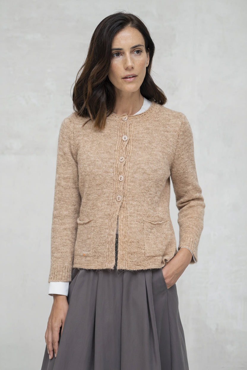 - Cárdigan de punto ligero con cuello redondo.