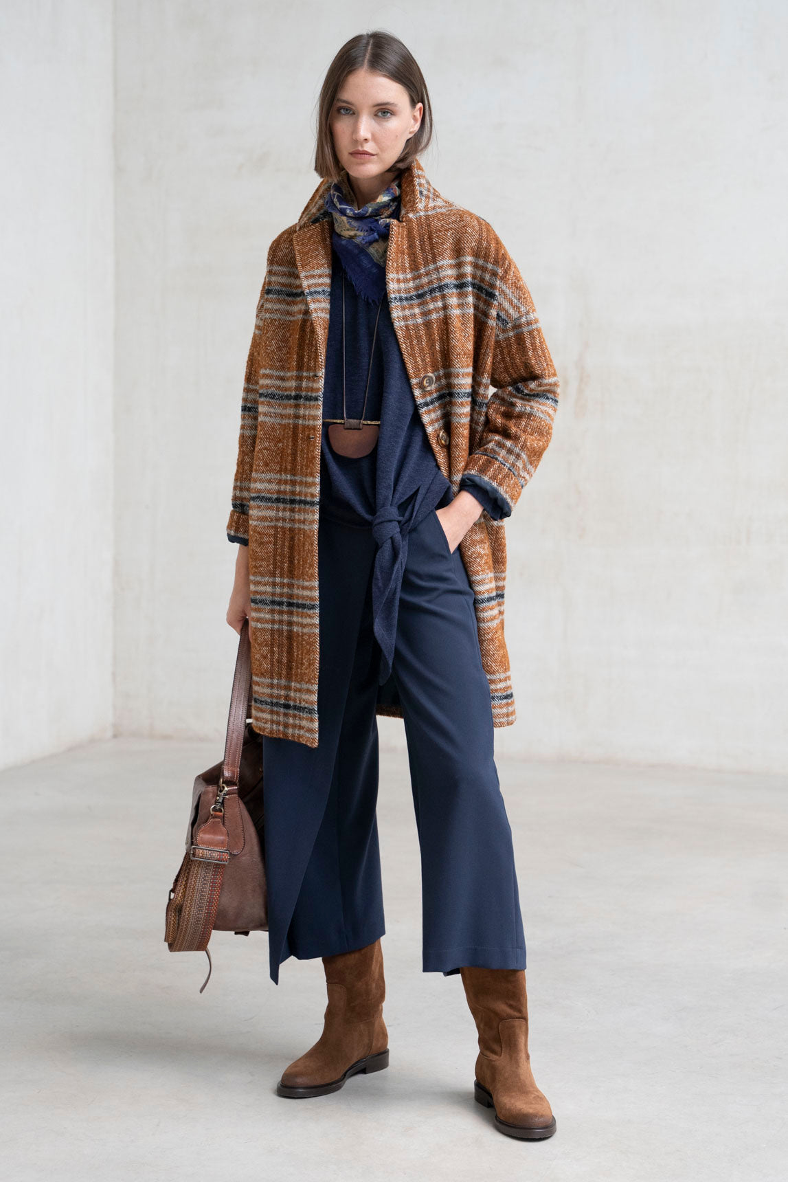 Abrigo Biella cuadros teja