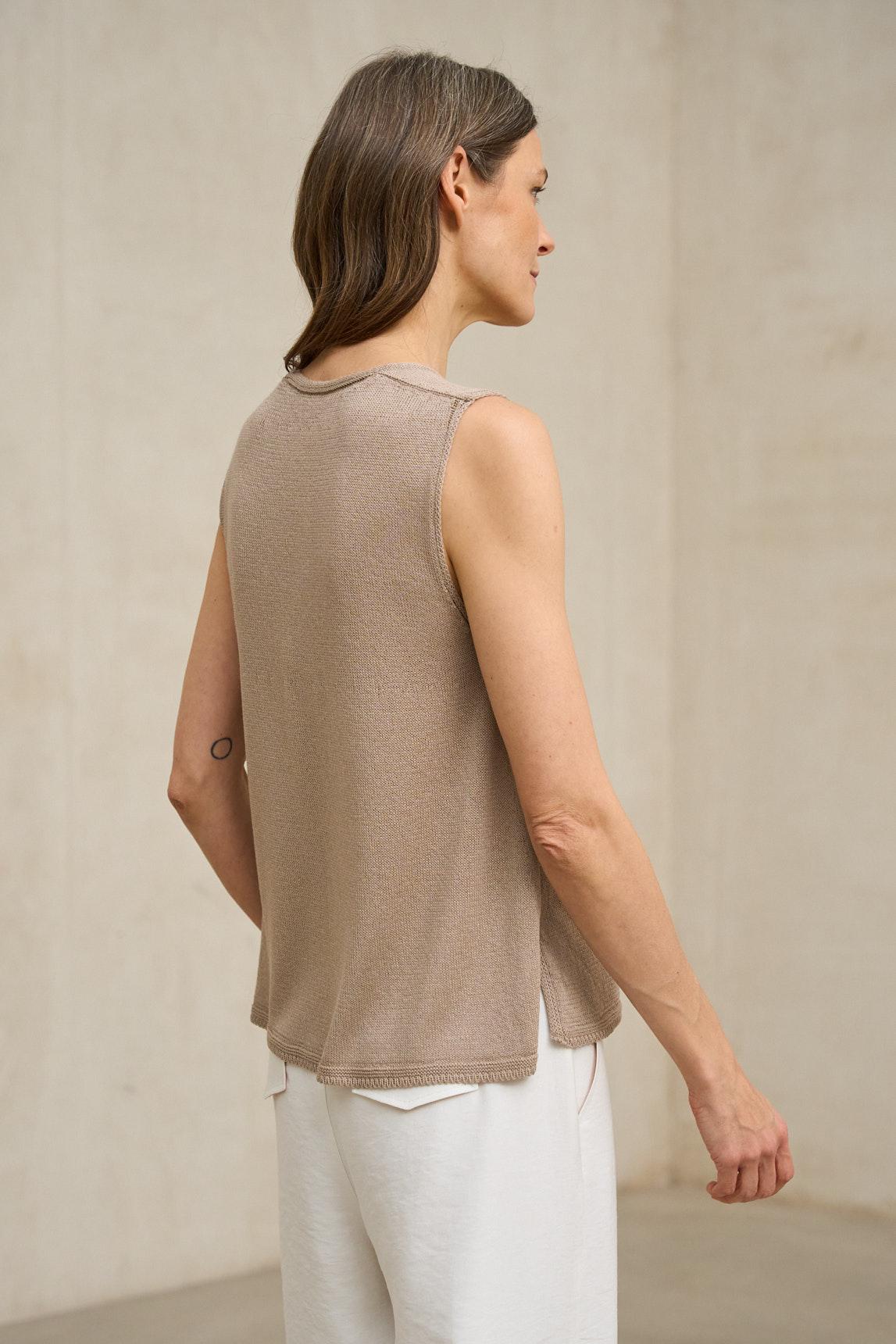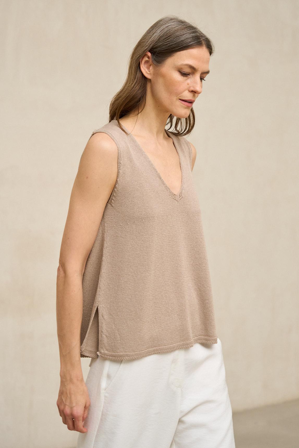 El top de punto Virel arena es una prenda minimalista de líneas limpias que destaca por su silueta depurada y su caída natural. Confeccionado en tejido de punto ligero y suave, presenta escote en pico y diseño sin mangas que estiliza el torso con discreción. Su corte recto y fluido permite que la prenda se adapte al cuerpo sin ceñir, aportando comodidad y equilibrio visual. El tono arena, cálido y luminoso, encaja perfectamente dentro de la paleta neutra de la colección y combina con facilidad con crudos, blancos rotos, camel, verde oliva o gris antracita. Ideal como top base para estilismos monocromáticos o como pieza versátil dentro de conjuntos más estructurados, el top de punto Virel arena es una prenda pensada para primavera y verano. Aporta serenidad, sencillez y coherencia al armario diario. Nos esforzamos por mostrar los colores de la forma más fiel posible, pero pueden variar ligeramente respecto a la realidad.