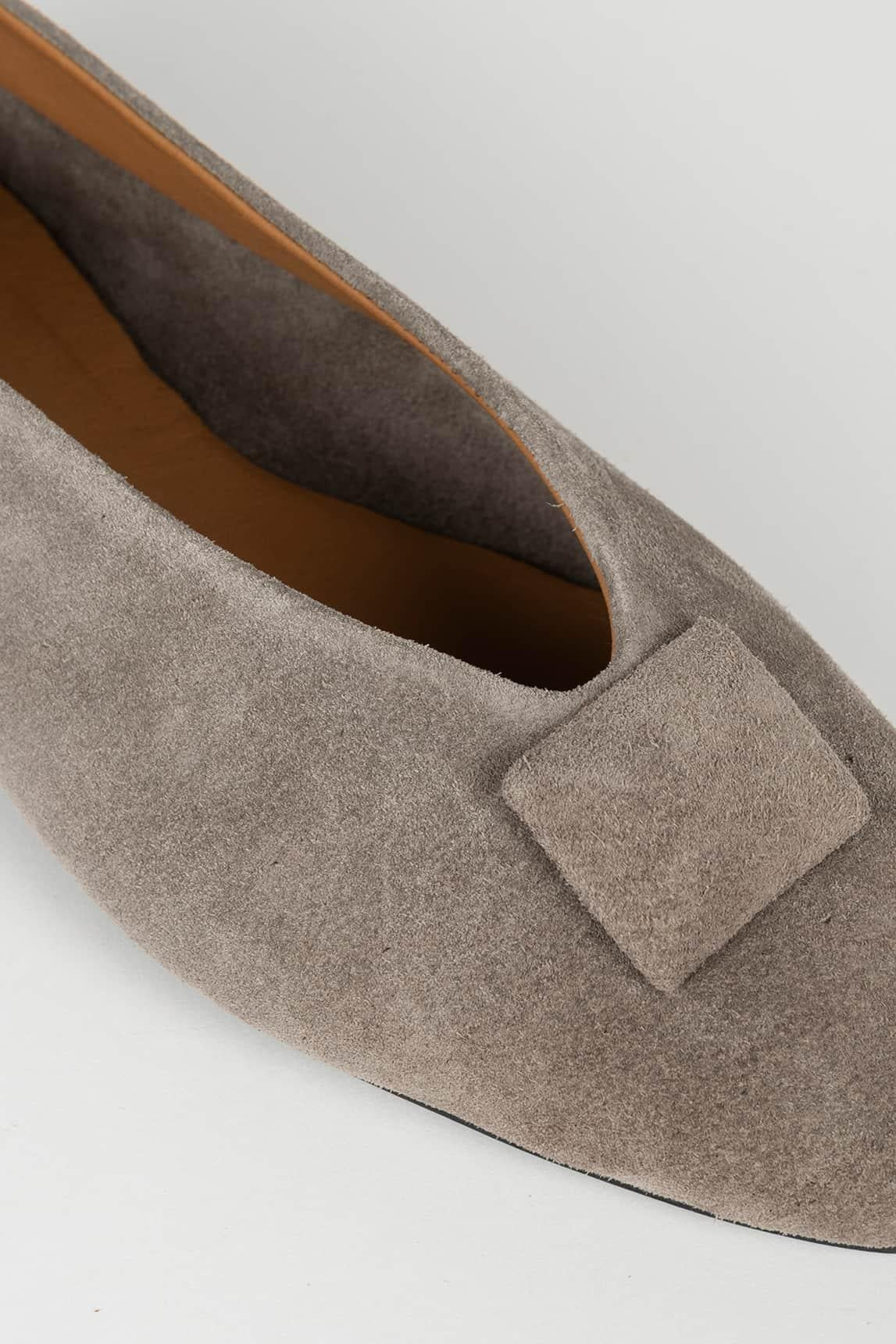 The Elvire Medium Gray ballet flat offers a sophisticated and contemporary interpretation of the classic style. The medium gray suede adds depth without sacrificing neutrality, making it a refined and versatile choice.