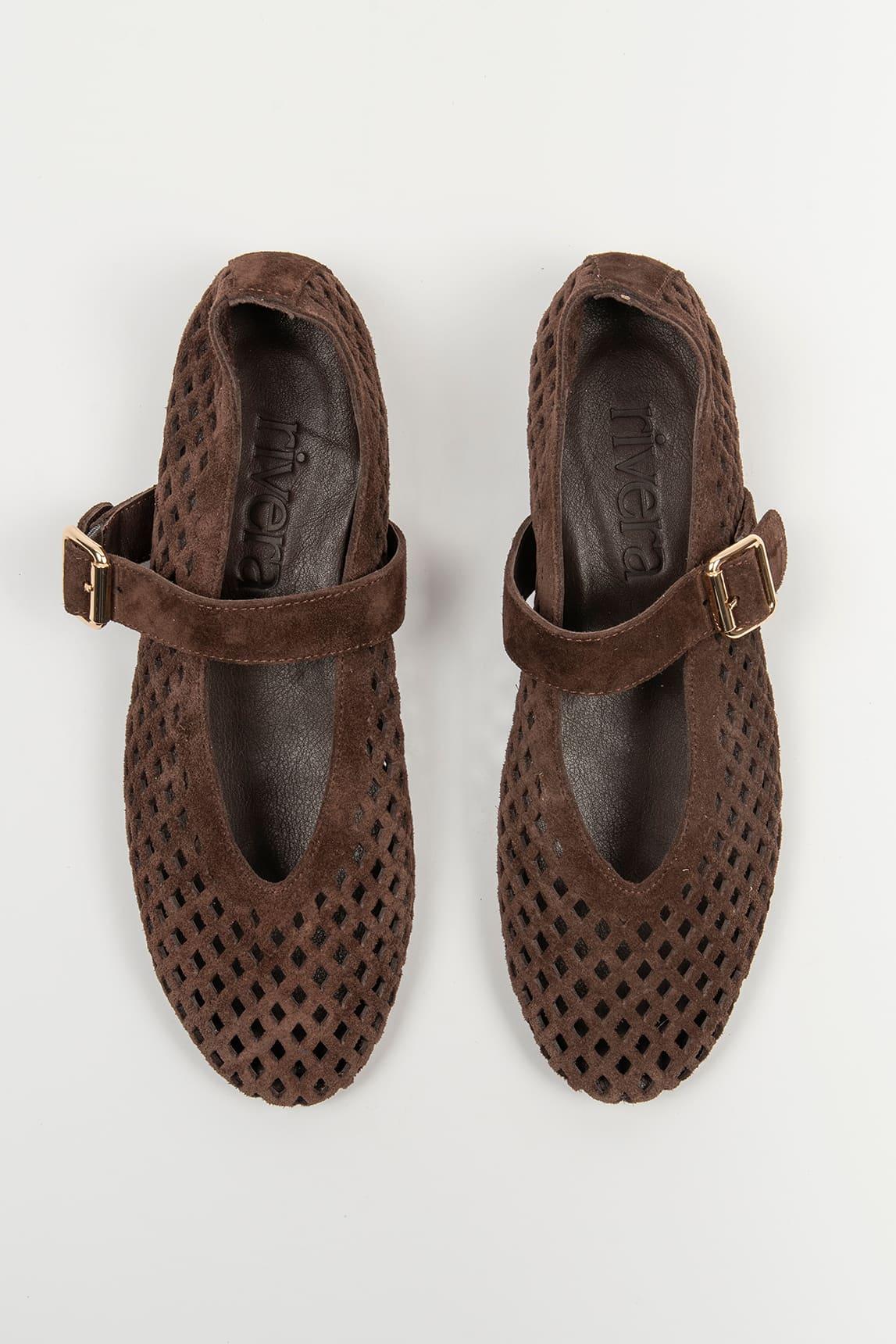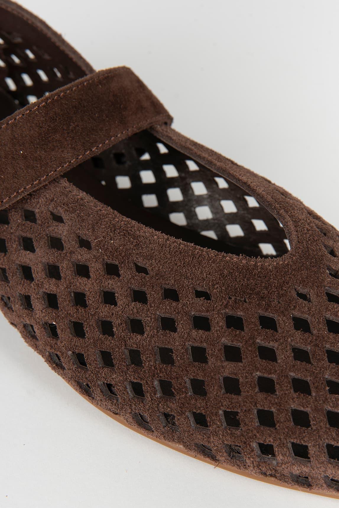 The brown Buco Mary Jane combines a classic design with a contemporary finish thanks to its openwork structure that adds lightness and texture to the overall look. Its sleek silhouette gently molds to the foot, creating a comfortable and feminine shoe ideal for everyday wear.
