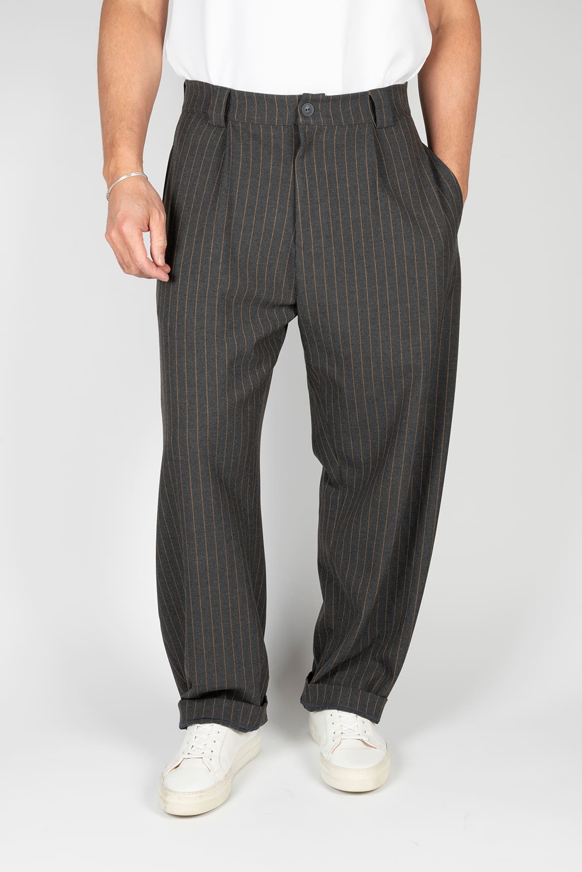 - Color gris marengo con finas líneas verticales en tono marrón.