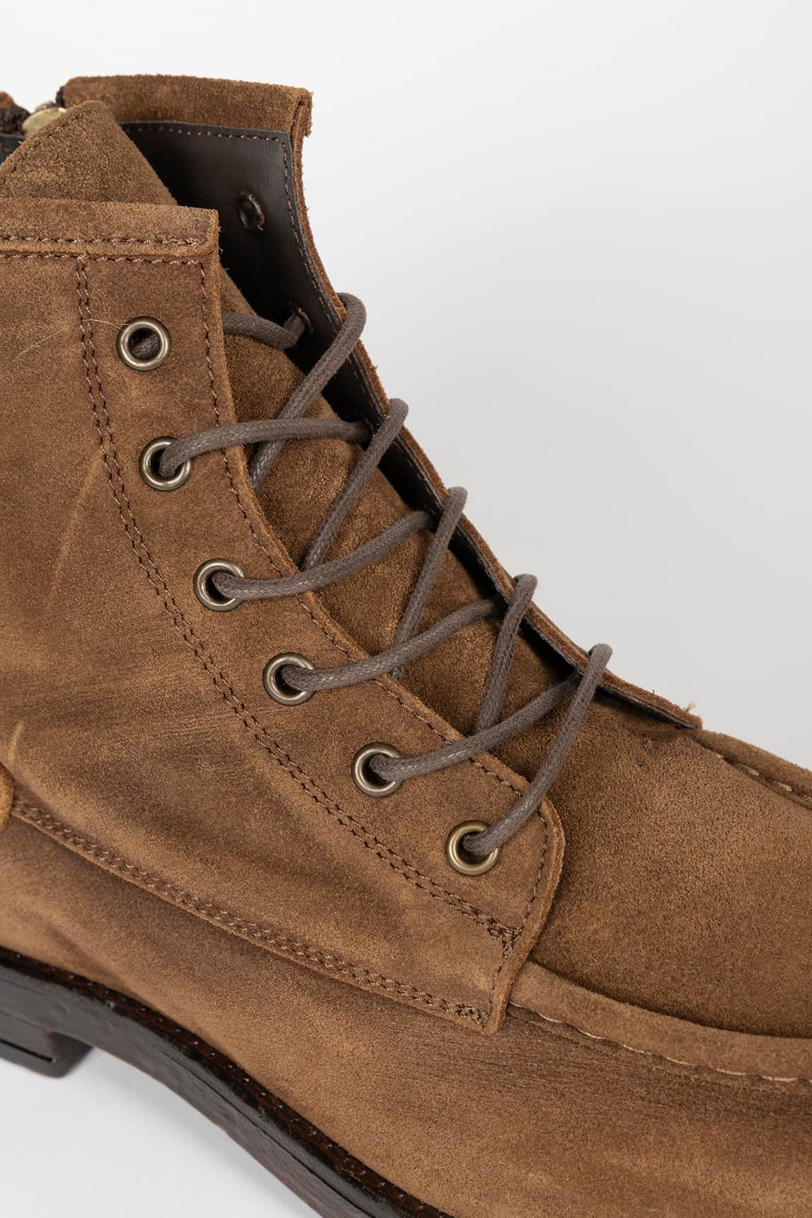 - Diseño tipo moc-toe con costuras vistas.