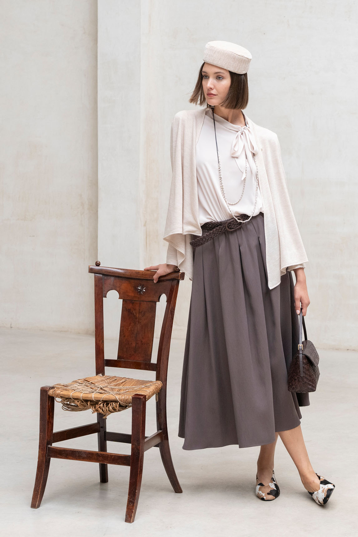 - Diseñado por Alexia Álvarez de Toledo para Rivera y pensado para coordinar con la Cazadora Tera arena de la colección o con cualquier prenda.
