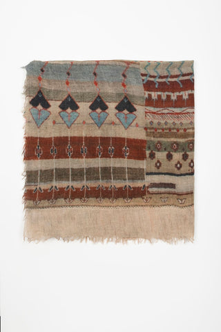 FULAR ZIG-ZAG MARRÓN GRIS Y MOSTAZA