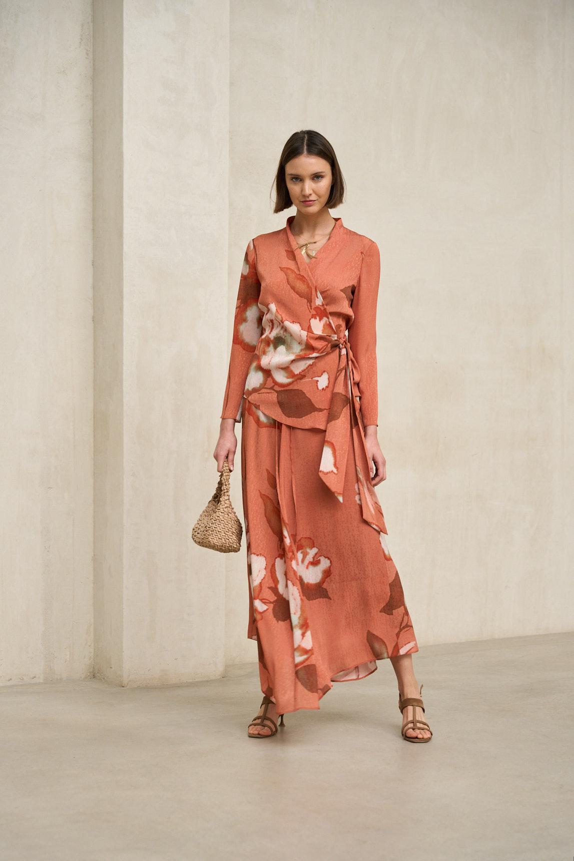 La Blusa Arlena estampado es una pieza fluida y femenina que destaca por su diseño ligero y su estampado artístico de inspiración artesanal, en tonos terracota, azul verdoso y matices neutros. Su silueta relajada y su caída suave aportan movimiento natural y una presencia equilibrada sin resultar recargada. Presenta escote redondo y manga corta de corte limpio, con una estructura suelta que favorece la comodidad y estiliza sin ceñir. El tejido ligero refuerza su carácter veraniego y la convierte en una prenda ideal para estilismos frescos y luminosos. Puede combinarse con pantalones neutros para un look más depurado o llevarse junto a la Falda Ailén Estampado para crear un conjunto coordinado con efecto vestido, perfecto para eventos informales, celebraciones de día o estilismos cuidados de primavera y verano. Una blusa versátil que aporta color, dinamismo y coherencia estética al armario estacional. Nos esforzamos por mostrar los colores de la forma más fiel posible, pero pueden variar ligeramente respecto a la realidad.
