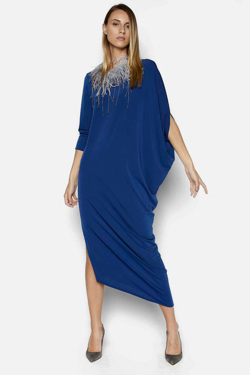 Descubre el vestido Indara de Rivera en color azul. Su corte único te garantiza un estilo elegante y moderno.  Destaca por su comodidad, de largo asimétrico y con abertura lateral es perfecto para eventos especiales. Su diseño exclusivo y sofisticado te hará destacar en cualquier ocasión.