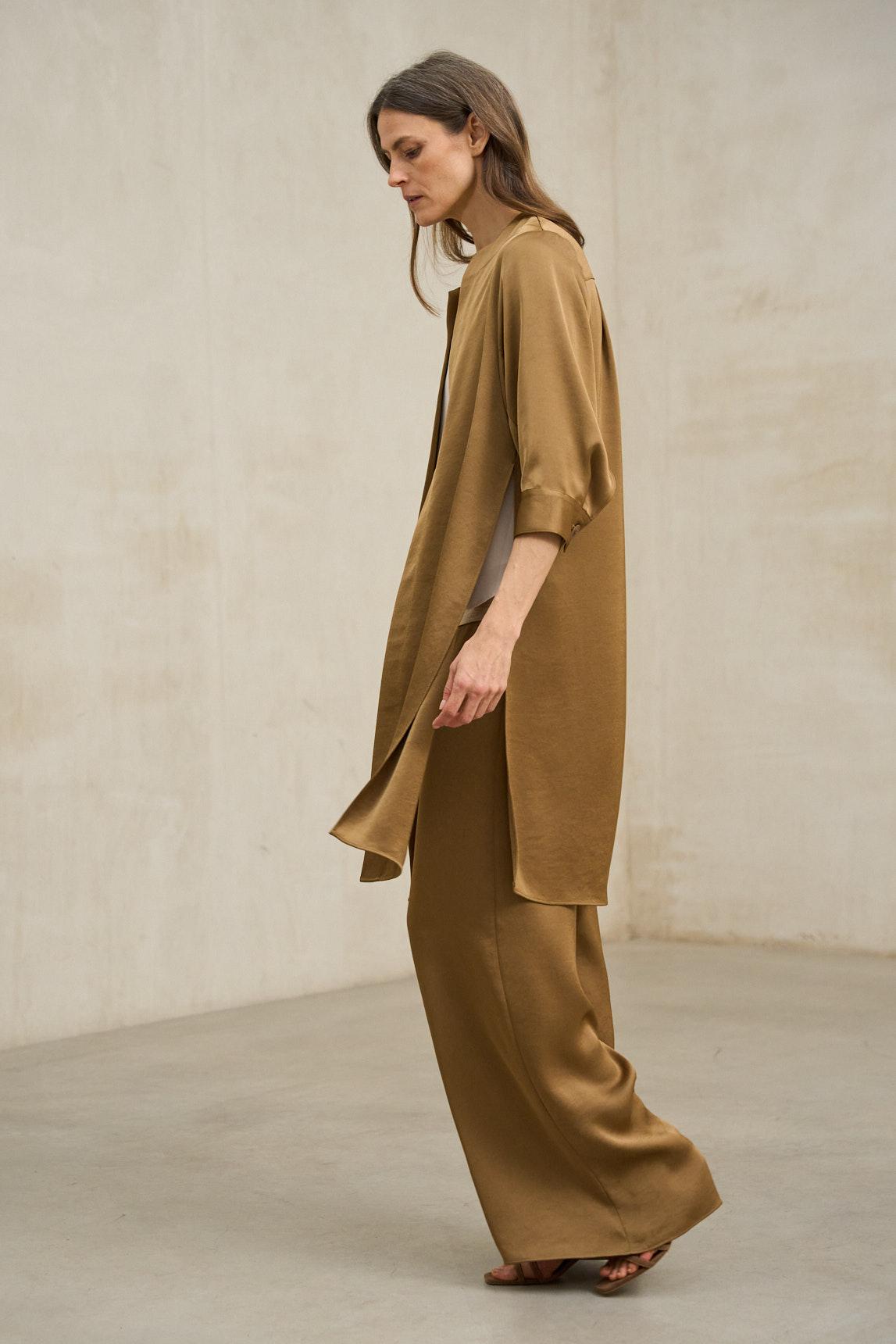 La levita Lirael camel tostado es una prenda ligera de silueta abierta y caída fluida, diseñada para aportar estructura suave sin rigidez. Su diseño sin cierre permite que el tejido se deslice con naturalidad, creando un efecto elegante y relajado al mismo tiempo. Con manga larga y corte recto ligeramente holgado, resulta ideal para superponer sobre tops, blusas o conjuntos coordinados. Su largo estiliza la figura y la convierte en una pieza versátil tanto para estilismos urbanos como para eventos más especiales. El tono camel tostado aporta calidez y sofisticación, combinando fácilmente con blancos, crudos, arenas o incluso tonos más intensos. Es una chaqueta perfecta para invitadas, celebraciones o para elevar looks neutros con un acabado refinado. Nos esforzamos por mostrar los colores de la forma más fiel posible, pero pueden variar ligeramente respecto a la realidad.