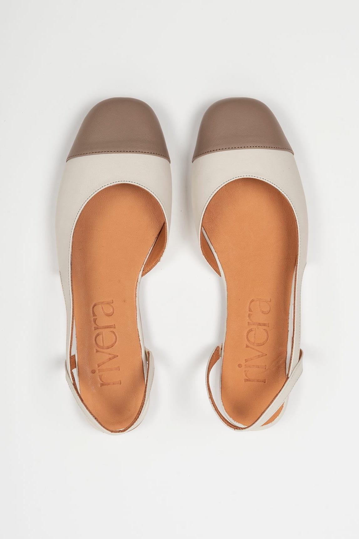 The Belara Topo sandal features a deeper color combination, where the ecru upper is complemented by a soft taupe toe cap. The contrast adds visual structure without sacrificing neutrality, creating a piece that's easy to integrate into a versatile wardrobe. The closed silhouette elongates the foot and balances proportions, while the snug heel strap ensures stability and a lightweight feel. The cushioned insole and flexible outsole enhance its everyday functionality. The taupe color adds elegant depth and pairs well with soft blacks, grays, sands, or monochromatic outfits. It's a flat sandal designed for urban, minimalist, and contemporary styles. A sophisticated and refined design that combines comfort and balance. We strive to display colors as accurately as possible, but they may vary slightly from the actual product.